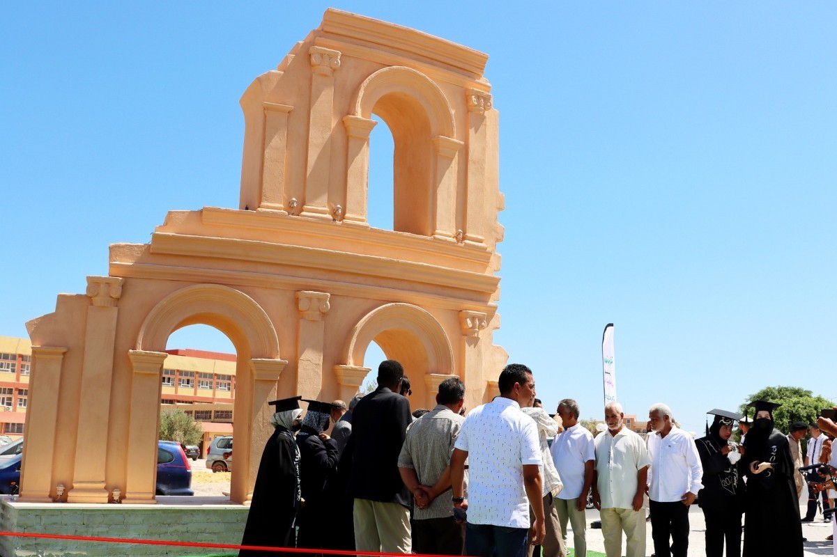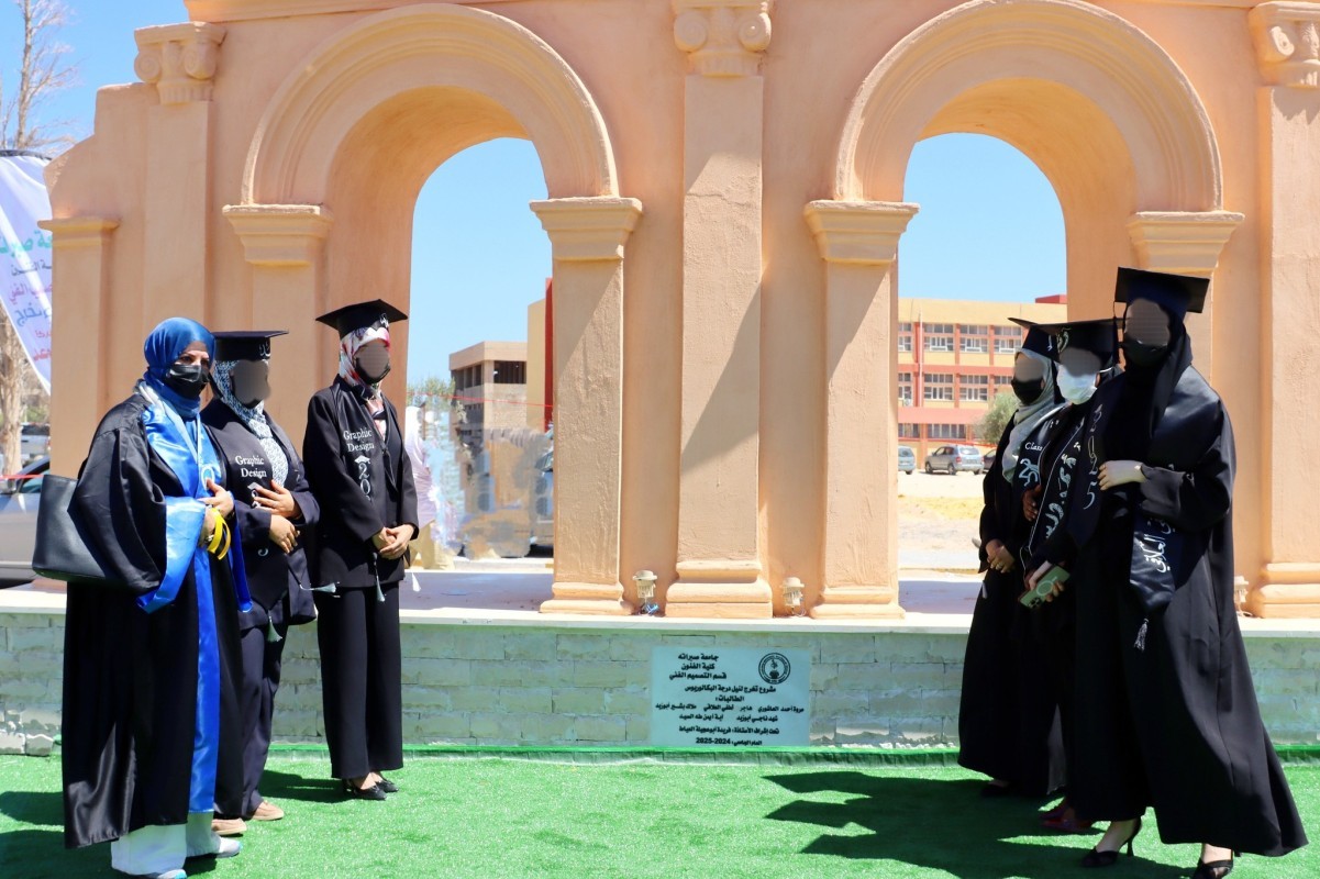 بحضور السادة كل من، عميد بلدية صبراتة ورئيس جامعة صبراتة، وعميد كلية الفنون، وعميد كلية الطب البشري صبراتة، ومدير معهد الفنون زاوية الدهماني، ومدير الإعلام السياحي المغاربي، ومدير الشبكة العالمية لريادة الاعمال، وممثلين عن وزارة السياحة، تم اليوم الأحد الموافق 20 يوليو الجاري 2025م، مراسم تدشين العمل الفني المتمثل في تنفيذ مجسم لجزء من المسرح الأثري صبراتة، وهذا العمل الفني مشروع تخرج مجموعة من طالبات السنة الرابعة قسم التصميم الفني بكلية الفنون جامعة صبراتة، للعام الجامعي 2024-2025م ويأتي هذا العمل الفني الجمالي الذي يعكس الإرث التاريخي والحضاري لمدينة صبراتة، في إطار ارتباط وعلاقة المؤسسات بالبيئة المحيطة واسهاماتها في التطوير والتنمية في مختلف الجوانب لا سيما الفنية والجمالية كما شهدت مراسم التدشين حضور عدد من المهتمين والمعنيين وعدد من الأساتذة والموظفين وأولياء الأمور وعقب مراسم التدشين تم تكريم الخريجين وعدد من الأساتذة والموظفين وعدد الشخصيات والجهات التي كان لها دور في نجاح برامج وأنشطة الكلية وسط أجواء من الفرح والتهاني والتبريكات