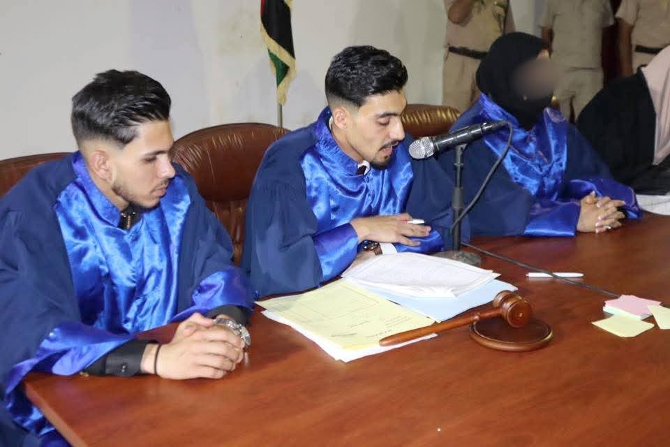 وتخلّل الحفل تقديم محاكمة صورية قام بها الطلبة الخريجون، جسّدوا من خلالها ما اكتسبوه من معارف ومهارات قانونية طيلة سنوات دراستهم بالكلية.