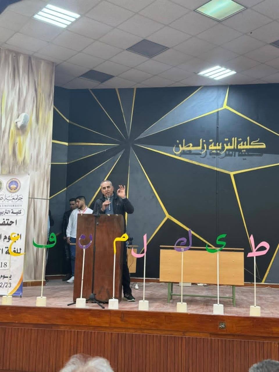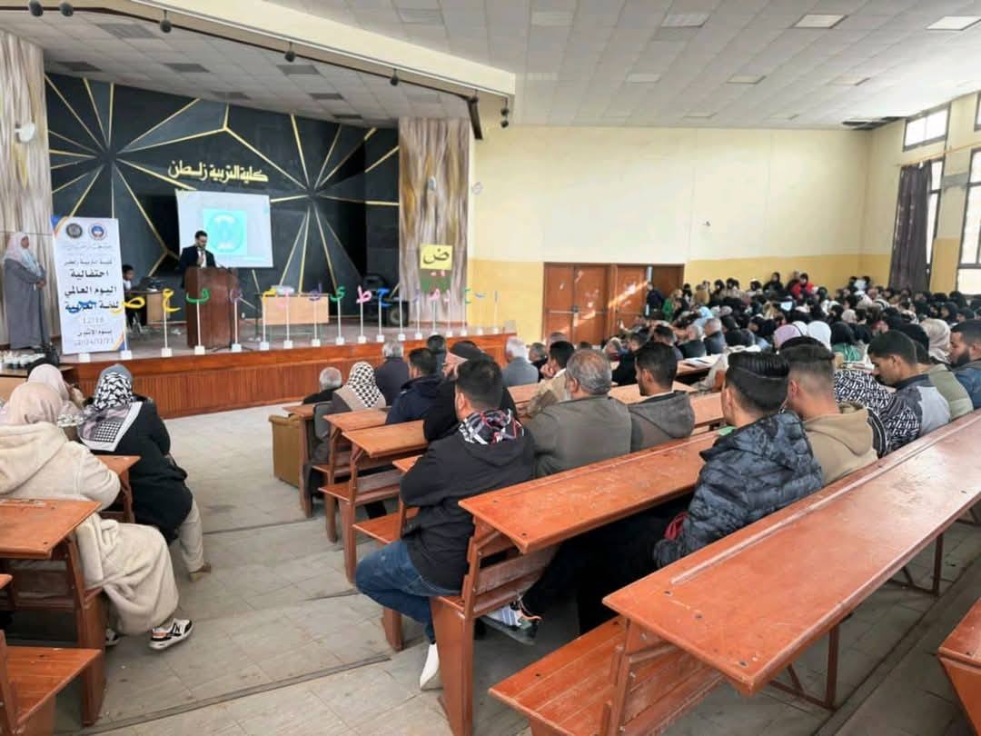 نظمت كلية التربية زلطن يوم أمس الاثنين احتفالية بمناسبة اليوم العالمي للغة العربية الذي يوافق 18 ديسمبر من كل عام، وذلك بهدف تعزيز مكانة اللغة العربية والاحتفاء بها، وإبراز دورها في نقل الثقافة والمعرفة والعلوم المختلفة
