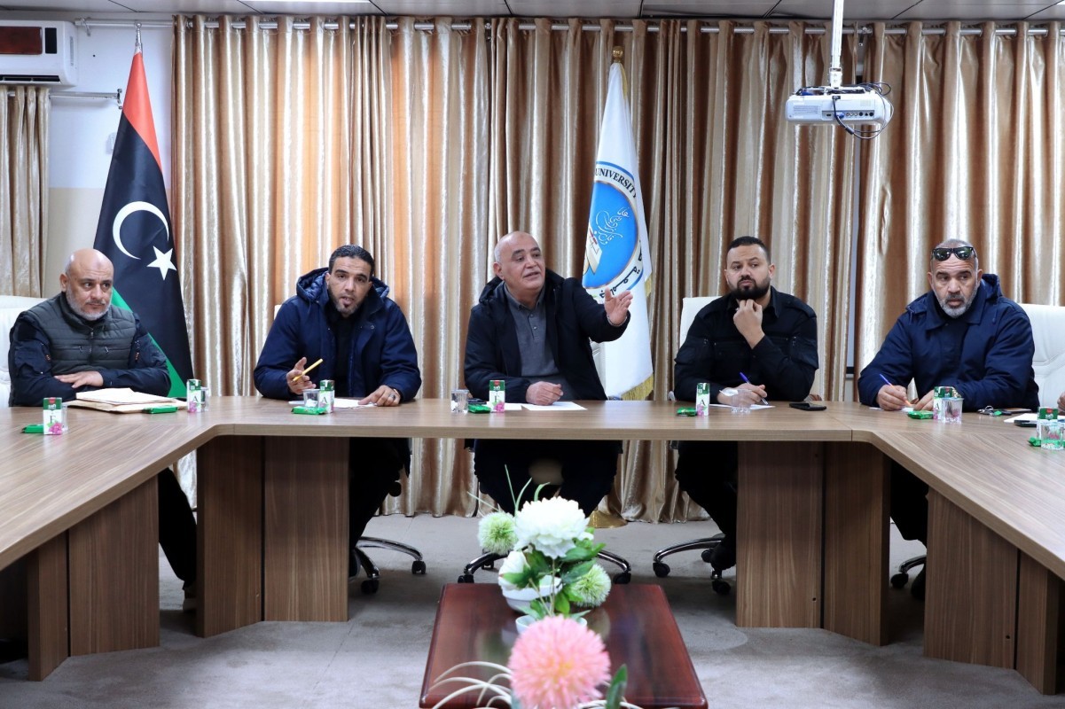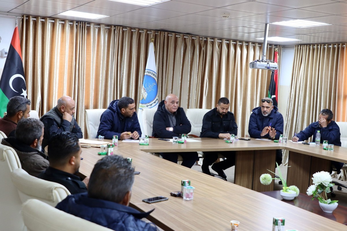 في اجتماعه الأول بعد استلامه لمهام إدارة الحرس الجامعي بجامعة صبراتة الاستاذ محمد أحمد غالب مدير الإدارة يجتمع بمشرفي الحرس الجامعي بالكليات التابعة لجامعة صبراتة