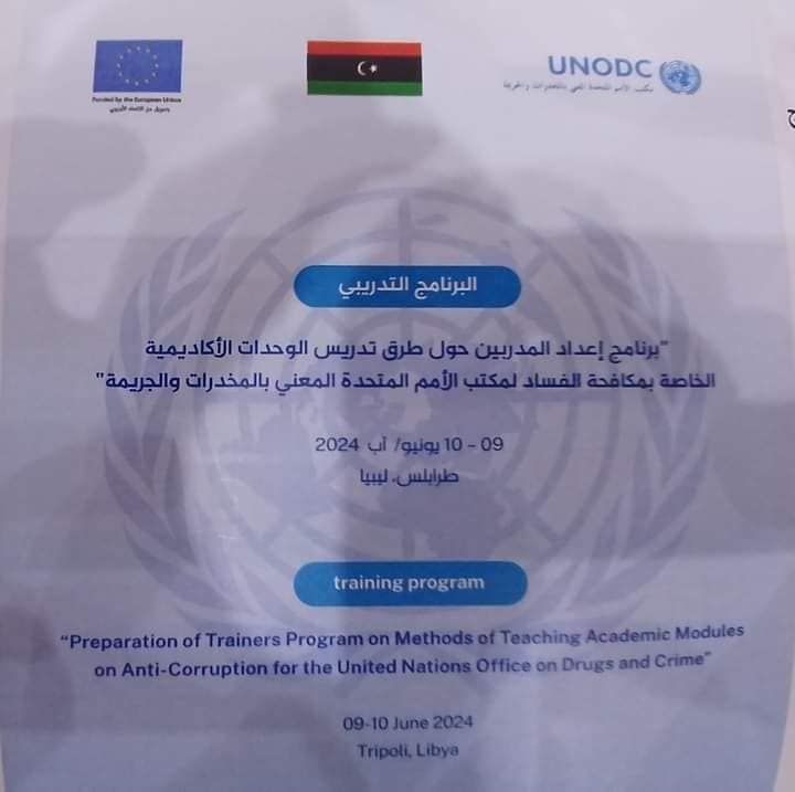 حيث تناولت الورشة التي تواصلت على مدى يومين متتاليين 10/9 يونيو الجاري بطرابلس، تناولت تدريس الوحدات التعليمية الخاصة بمكافحة الفساد والتي ستكون ضمن الوحدات التعليمية في الجامعات الليبية.