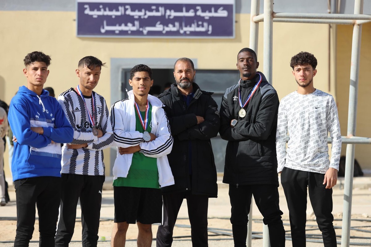 A part of the "Cross-Country Race" competition organized by the Department of Sports Training, under the supervision of the College's Activity Office, in collaboration with the Traffic and Licensing Department in the Western Plain. The competition was held in excellent sporting conditions, with oversight from the Dean of the College, who praised the quality of the organizational supervision. Additionally, the winning students were honored for their advanced rankings.