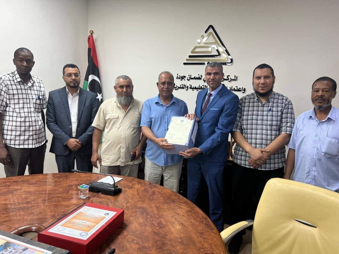 Today, Wednesday, August 28, 2024, the conference hall of the National Center for Quality Assurance and Accreditation of Educational and Training Institutions hosted the ceremony for the submission of institutional accreditation documents for the Faculty of Oral and Dental Surgery (Surman), the Faculty of Arts and Education (Sabratha), the Faculty of Law (Zelten), and the Faculty of Arts (Al-Jamil).