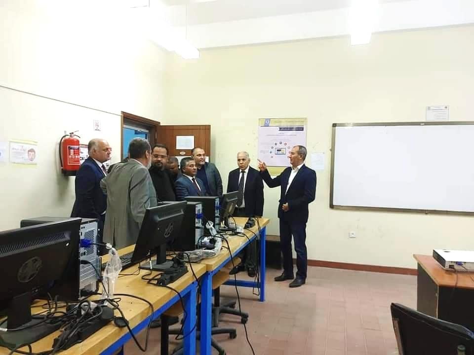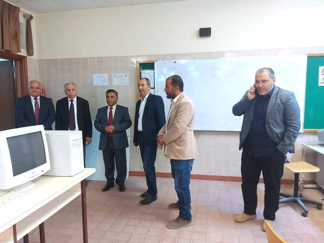 After the dialogue session, the Nalut University delegation, accompanied by the President of Sabratha University, the Vice President for Academic Affairs, and the Director of the International Cooperation Office, took a tour inside the university's headquarters to observe the workflow of the offices and departments. They also visited the College of Engineering and the College of Medicine at Sabratha to review the educational and administrative processes, as well as to learn about the graduate programs at the College of Engineering.